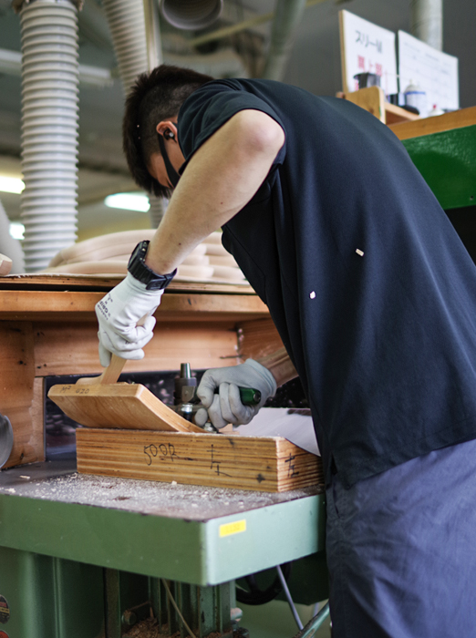 私たちは木材1本1本の特徴に合わせて、力加減や削る角度を調整し、時には使う刃物すらも変えています。どうして調整の必要の有無がわかるのかというと、作業をしている中で手から木材それぞれの個性が伝わってくるからです。堅すぎるものもあれば、逆に柔らかすぎるものもある。節が見えていたり、場合によっては途中で割れてしまったりするかもしれない。そういった木材の特徴を判別しながら、適切な方法で削り出していくことが求められます。手作業だからこそできる技ですね。