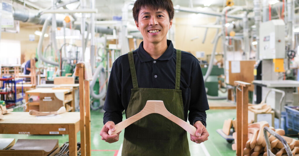 ハンガーは職人全員で順番に作っていくものです。成型工程で仕上がったものを次の塗装工程の職人に「どうぞよろしく」と託すので、いいものを仕上げよう、頑張ろうという感じで、しっかりと気持ちを入れて作業をしています。