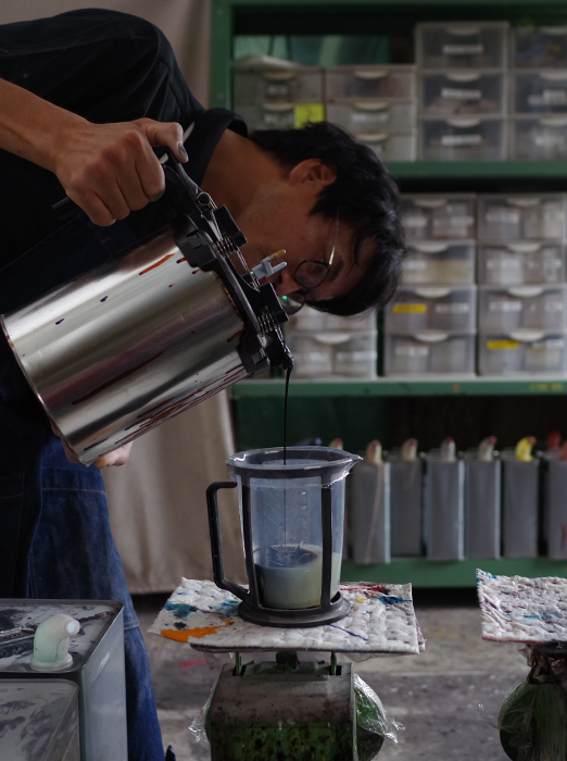 綺麗に整えられた木地に下地色をのせていきます。この下地色の仕上がりで最終工程の出来が左右されると言われるほど、非常に重要な工程です。ここでは木の特徴にあわせて色を調整する技術が必要とされます。なぜ下地塗装が必要なのかというと、直接木地に完成時の色をのせても狙ったとおりには発色せず、表面的なものになってしまうからです。これではNAKATA HANGERの特徴である、奥深さのある魅力的な色にはなりません。僕たちは最終状態の仕上がりで指定されている色が完成することをめがけて、何層も複雑に色を重ねています。そうすることで、塗装色に奥深さが出ます。色の深みだけでなく、何層にも重ねられた色の向こう側に見える美しい木目を引き立たせることができるようになるのです。職人が自身の目と経験で判断し、微調整を行うことで、塗装の奥に息づく木の美しさを魅せています。これは機械ではできないことで、経験を積んだ職人の技術があってこそのものです。木の色に合わせた調整は感覚と経験を用いて瞬間的に判断しており、最低限の感覚を身につけられるまでに1年はかかると言われています。