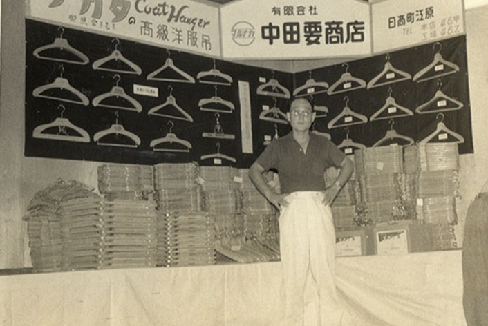 2026年、中田工芸は創業80周年を迎えます。これもひとえに中田工芸をご愛顧賜りましたお客様、並びにご支援くださいました全ての皆様のおかげでありますことを、心より感謝いたします。中田工芸は1946年、創業者である中田敏雄と木製ハンガー職人との出会いからその歴史が始まりました。以後、戦後の復興、高度成長時代を通じて、店舗などの業務用ハンガーとしてファッション業界に貢献してまいりました。その間、なによりも大切にしてきたのは顧客からの信頼を守ることです。業界ニーズである品質重視、個別のデザインに対応する技術、納期遵守の徹底した生産管理の構築でした。こうした企業文化は、自社ブランド「NAKATA HANGER」の展開へも引き継がれ、一般のお客様からも評価をいただくようになりました。